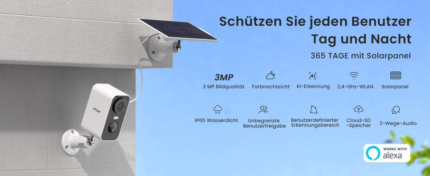 Überwachungskamera WLAN Solar 2K Schwarz | ieGeek Innen/Außen